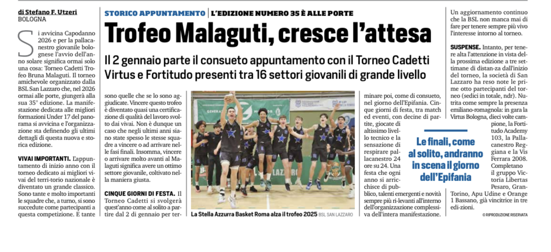 XXXV Edizione Torneo Cadetti - Trofeo Bruna Malaguti: le prime otto partecipanti